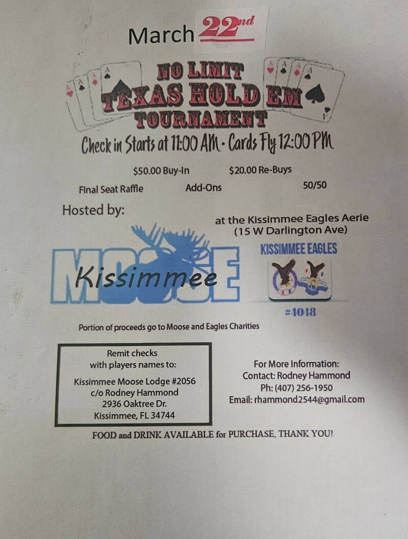 We have three charity events coming up . Two will be in April both of them are for Knights of Columbus one is in Winter Haven the other one is in Kissimmee . As we get closer more information we put out